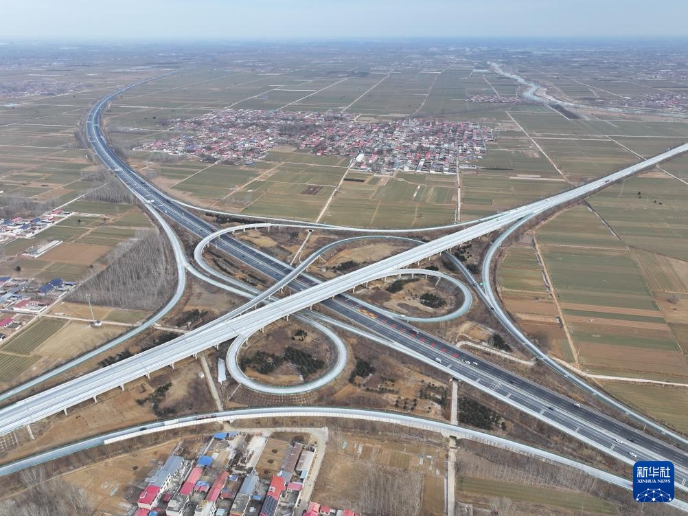 这是1月18日拍摄的京雄高速泗庄枢纽互通(无人机照片)。新华社记者 朱旭东 摄