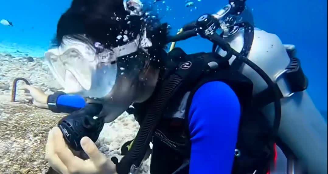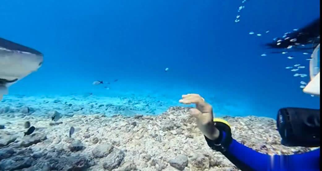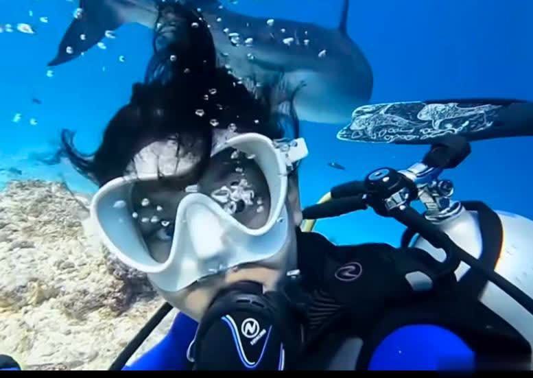 刘烨女儿霓娜迎来14岁生日,母亲安娜晒出她潜水与虎鲨同游的视频,水下的她表现勇敢,游刃有余。霓娜潜水时姿态轻盈。霓娜调整呼吸装备,动作娴熟。霓娜在水下观察鱼群。虎鲨从霓娜身后游过,她满是兴奋。霓娜伸手探向虎鲨,表现勇敢。