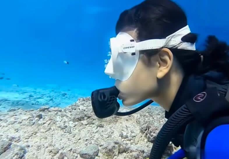 这个女儿是2012年出生了,如今他们的女儿已经14岁了,那么随着年龄的增长呢,这个小姑娘也是越来越优秀了,不仅学习不错,而且还学习各种课外的技能,近日她参加潜水活动,也是美感十足。